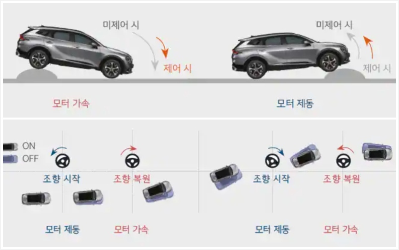 결국 하이브리드 차량은 전기 모터의 제어를 통해서 차량의 거동이 줄어들게 되면서 좀 더 유연한 조향이 가능해 집니다.