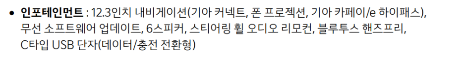 이제 마지막입니다. 인포테인먼트는 12.3인치 내비게이션이 기본입니다. E 하이패스를 포함한 최신 기능을 모두 포함하고 있네요!