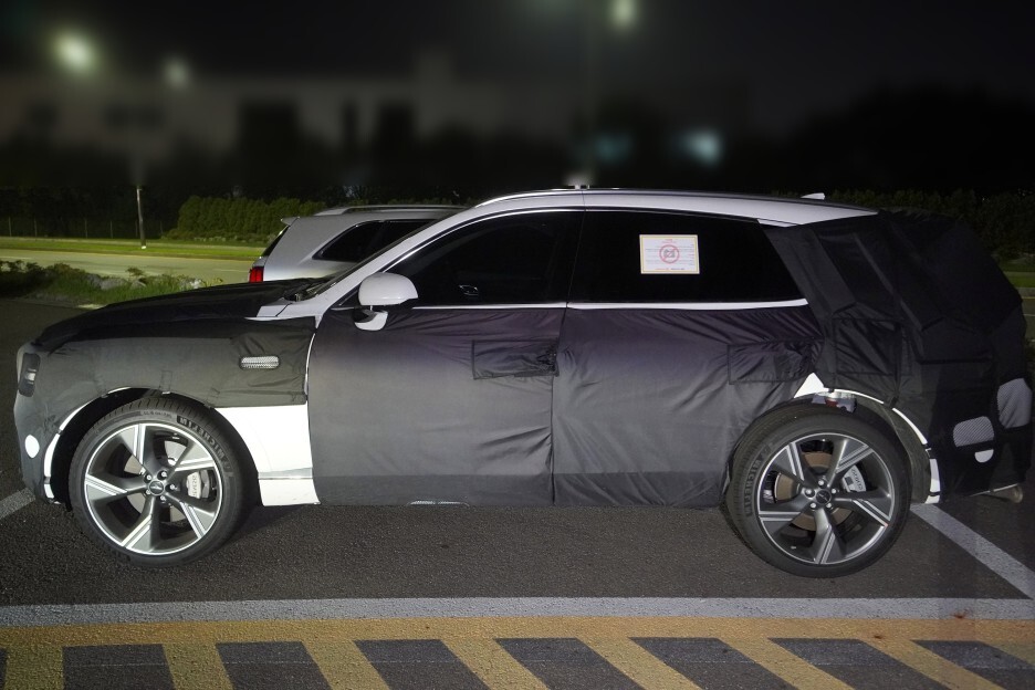 거의 비슷한 각도에서 두터운 위장막 커버가 제거된 테스트 차량이 포착되었습니다.