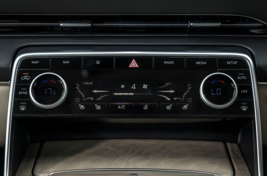 신형 싼타페의 사용자 인터페이스를 칭찬하는 이유는 공조기 컨트롤을 보면 온도 조절 기능 위에 작은 원형 다이얼이 제공되죠?