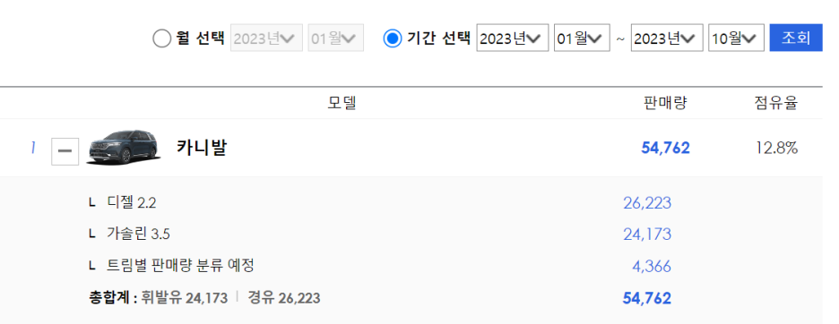 하이브리드 엔진이 최초로 적용된 카니발은 자영업자나 사업자도 많이 구입하기 때문에 차이가 있겠지만 절반 정도는 하이브리드 차량을 선택할 가능성이 높아보입니다.