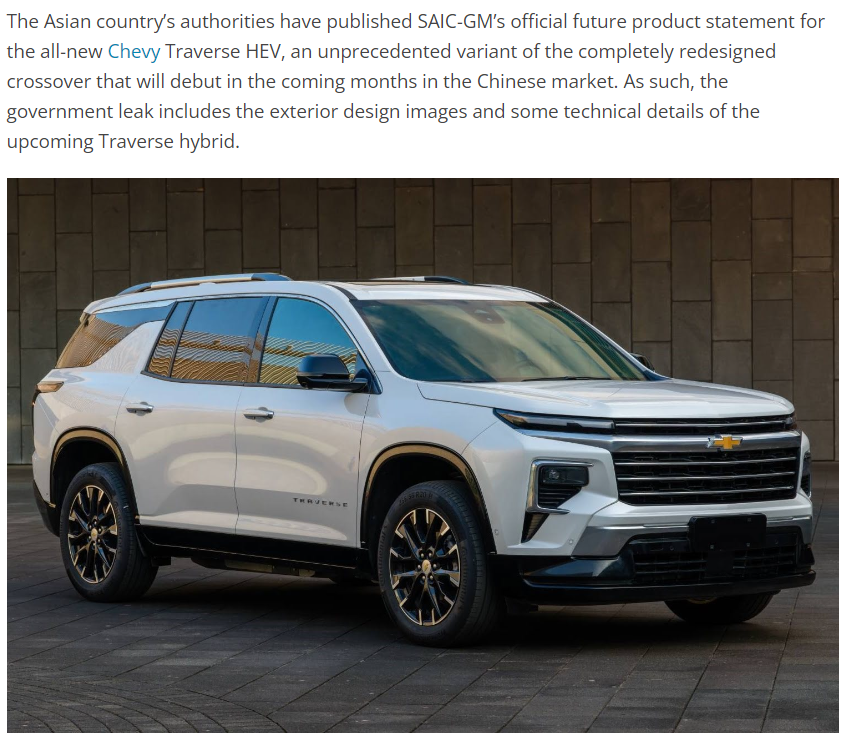 그리고 새로운 트래버스 하이브리드 차량이 중국에서 처음 유출되었다는 것이죠!