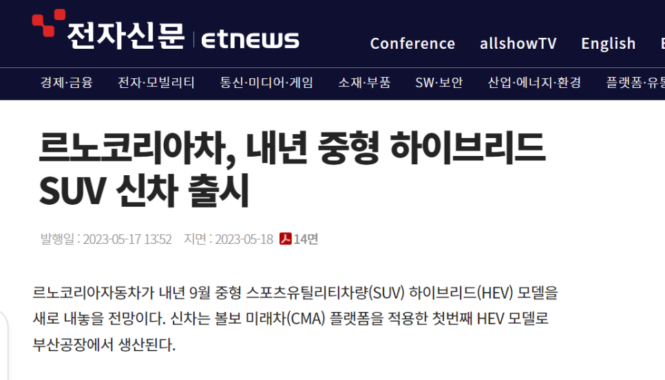 르노가 뭔가 확실한 정보를 발표해 주길 기대했는데... 발표 내용에 전략적인 허브로 대한민국이 역할을 하고 있다는 말이구요!