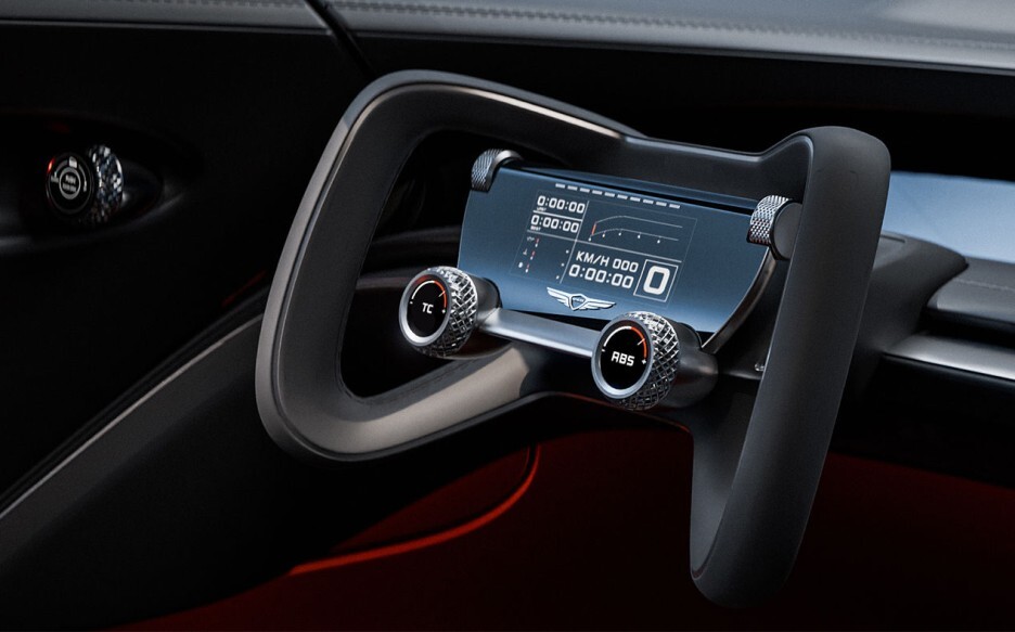 계기판 상단 양쪽 끝에도 2개의 다이얼이 제공되는데 어떤 기능이 제공될까요? 레이싱 도중에 검지 손가락을 통해서 빠르게 조작이 가능할 것 같은데 제는 이 기능이 궁금하네요!
