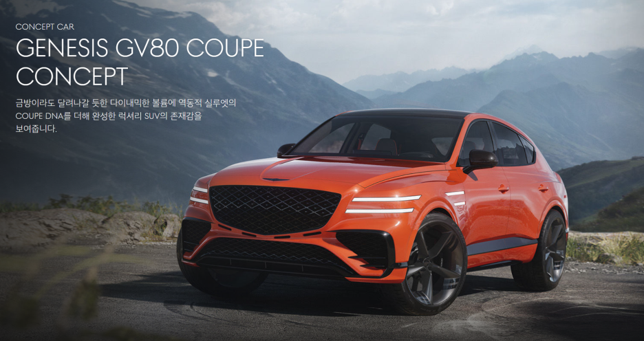 그리고 최근 #GV80쿠페 콘셉트가 공개되었습니다. 좀 처럼 보기 힘든 SUV 쿠페 콘셉트인데, 이 당시부터 강렬한 마그마 색상이 제네시스의 고성능을 암시하는 힌트를 부여했죠?