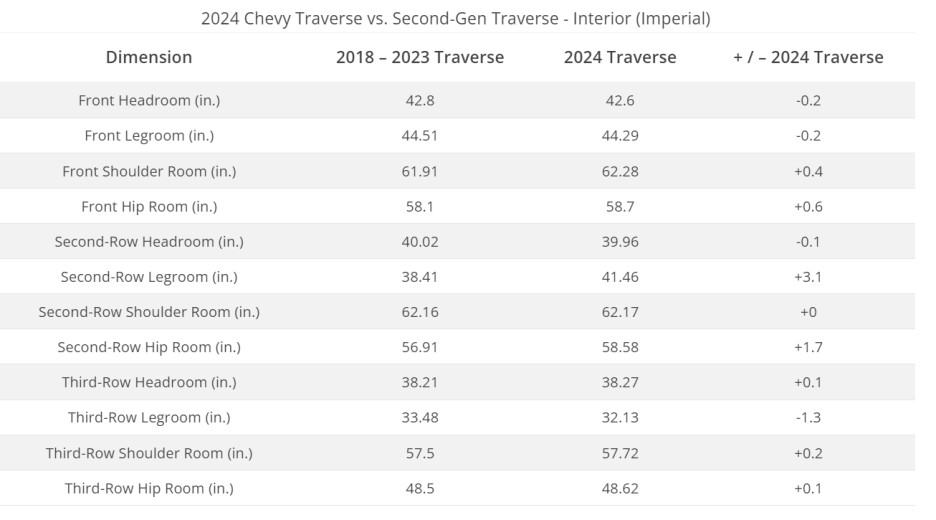 신형 트래버스 실내 제원 공개!