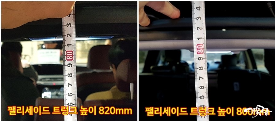 결과는 예상보다 놀랍네요! 이유는 기존 트래버스는 외부 사이즈가 월등이 컸지만 실내 사이즈는 팰리세이드와 비슷한 수준이었습니다.