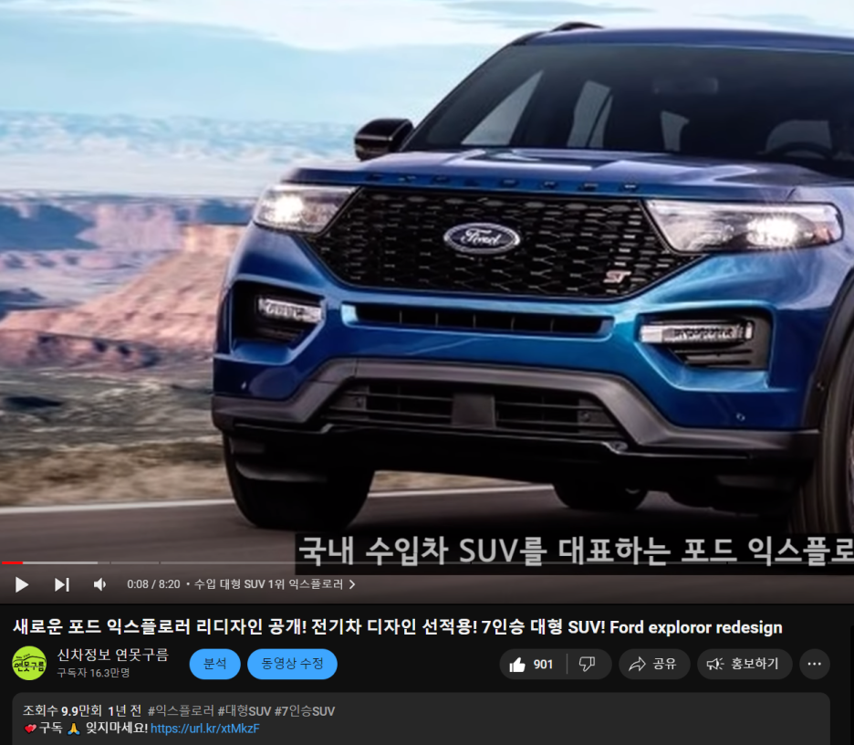 신형은 국내에 출시될 가능성이 높을 것 같은데 포드 코리아가 좋은 가격에 익스플로러를 국내에 출시해서 수입 대형 SUV의 자존심을 회복해 주면 좋겠네요!