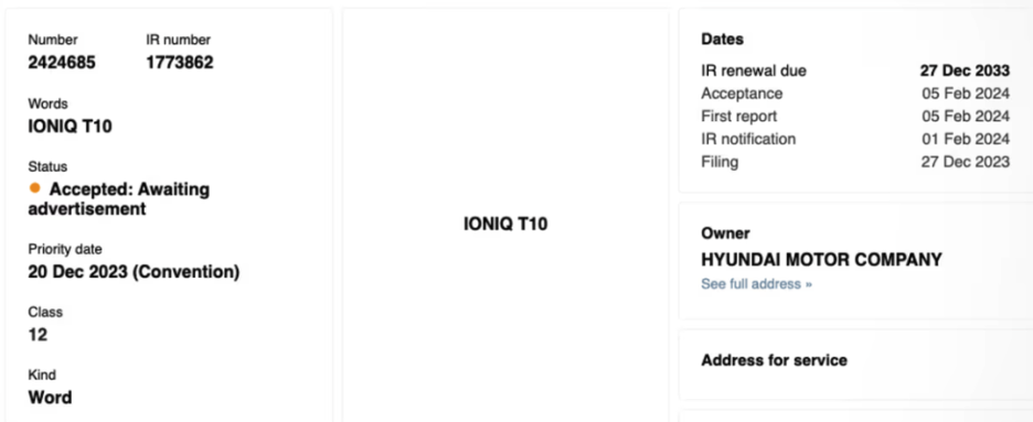 호주 시장에 #아이오닉T10 이라는 이름으로 지난해 9월 상표권을 출원한 것이 확인되었습니다.