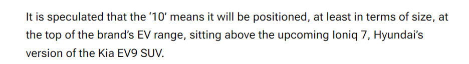 10 이라는 숫자는 기아 EV9과 아이오닉7 보다 위에 위치하며 크기에 있어서도 최상위라는 것이죠!