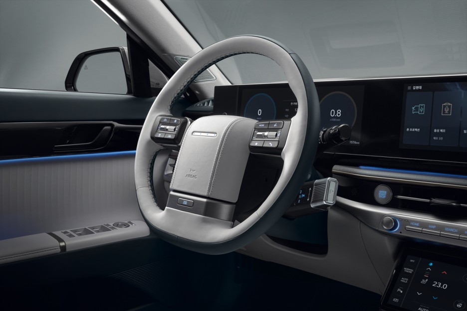 센터페시아의 콘솔이 이어진 부분을 제외한다면 아이오닉 7의 운전자 공간은 신형 싼타페와 유사하네요!