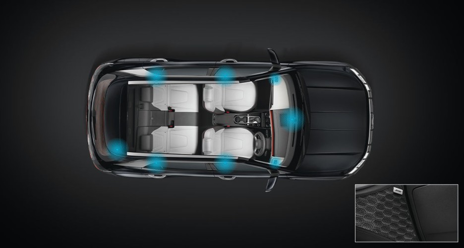 실내의 감성은 높여주는 스피커는 전면에 3개, 도어에 4개 후방에 1개로 총 8개의 스피커가 제공됩니다.
