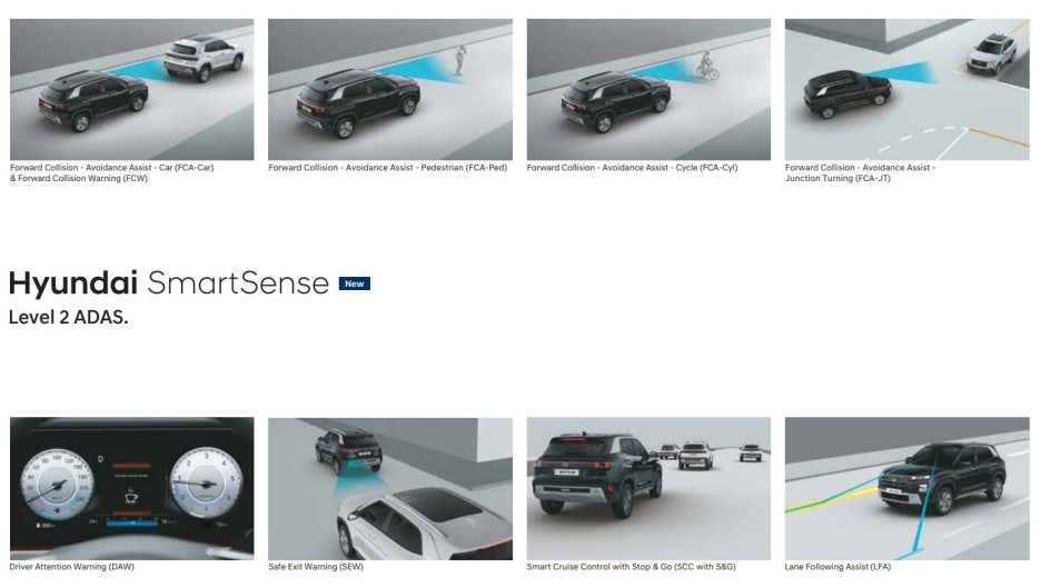 운전자 보조 시스템은 경쟁사를 압도하는 19가지 스마트 센스 기능과 레벨2 ADAS 기능이 제공됩니다.