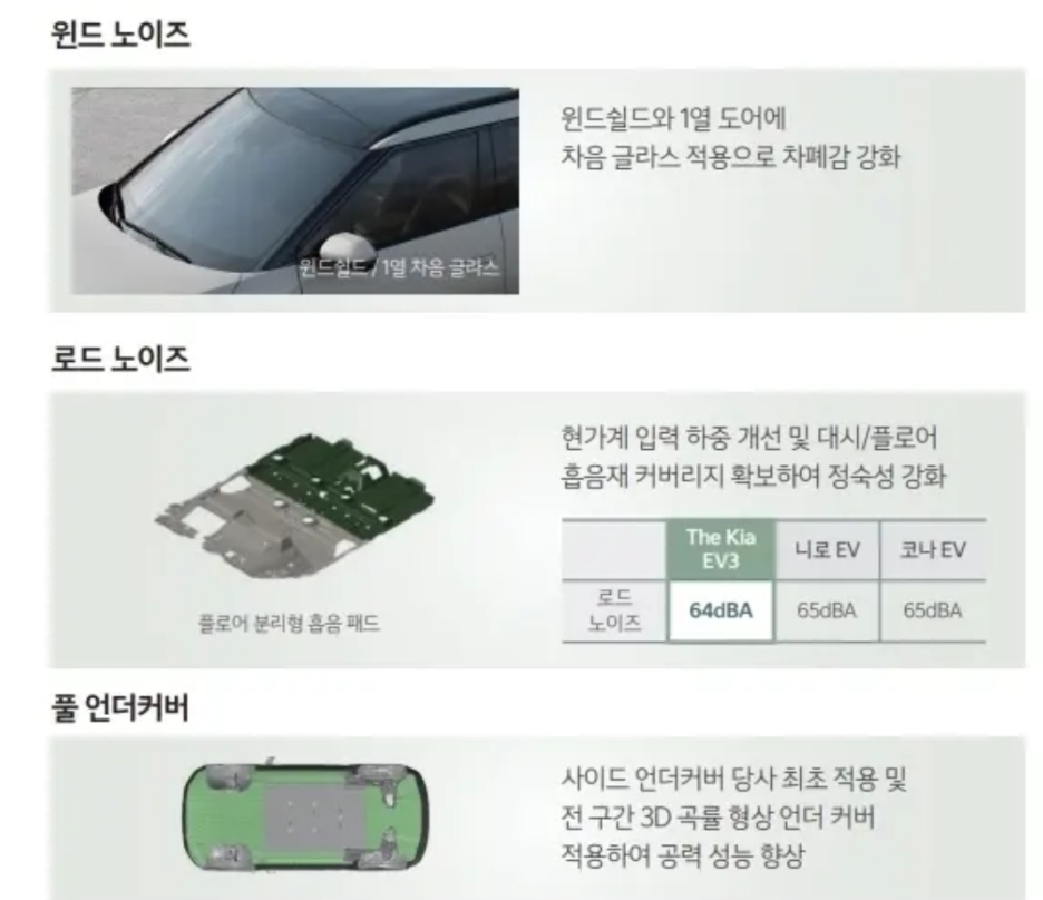 윈드쉴드 1열 도어 차음 글라스가 적용되었으며, 전기차에는 엔진이 사라졌기 때문에 바닥쪽 소음을 중점으로 개선해야 고급진데, 플로어 흡음 패드 및 바닥 전체에 언더커버가 적용된 것을 처음으로 확인할 수 있네요! 배터리를 제외하면 풀 언더 커버로 보입니다. 놀랍죠?