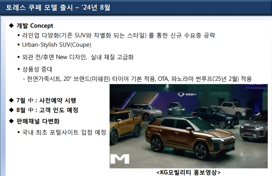 | 코란도 후속! 토레스 KR10 최초 풀 하이브리드 적용된다?! 투싼, 스포티지,싼타페,쏘렌토 하이브리드 잡을까? (1) | 2024.08.25 |