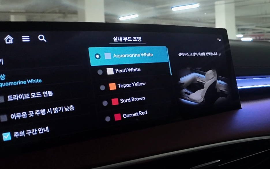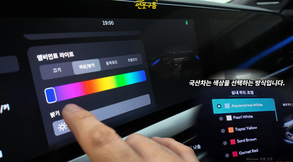 국내 차량에서는 색상을 선택하는 방식이 기본인데, 차이가 있습니다.