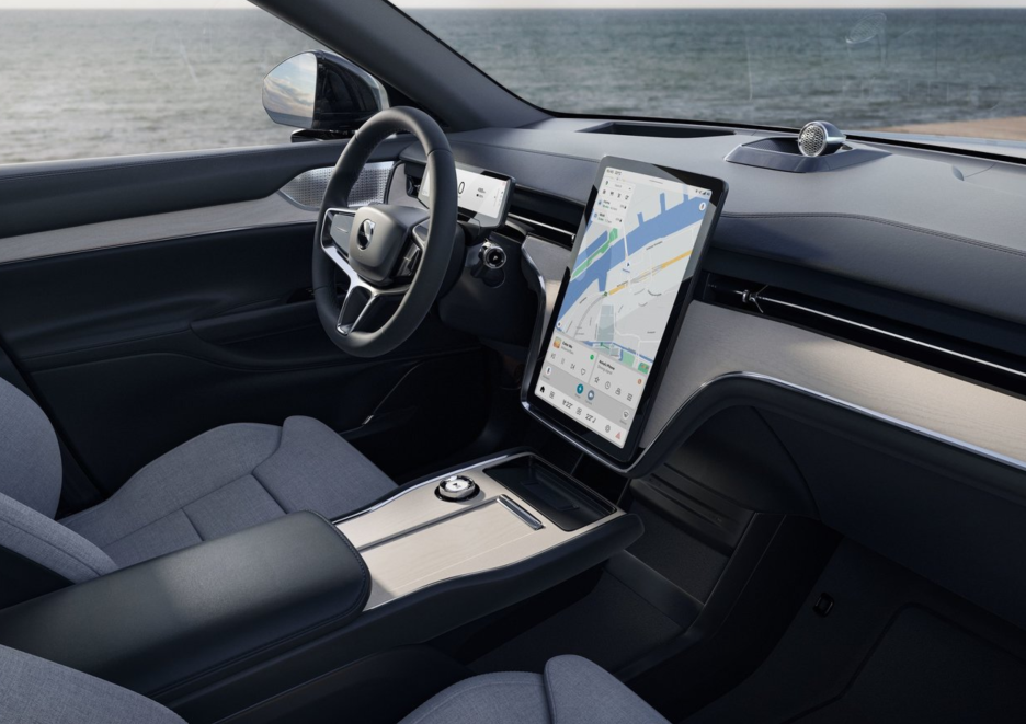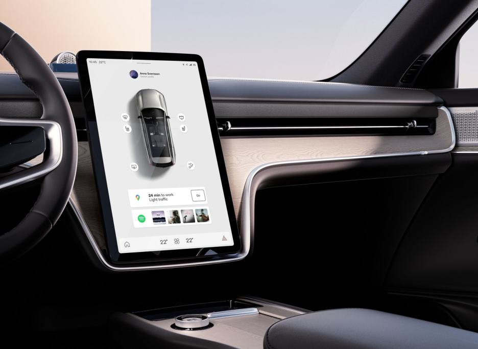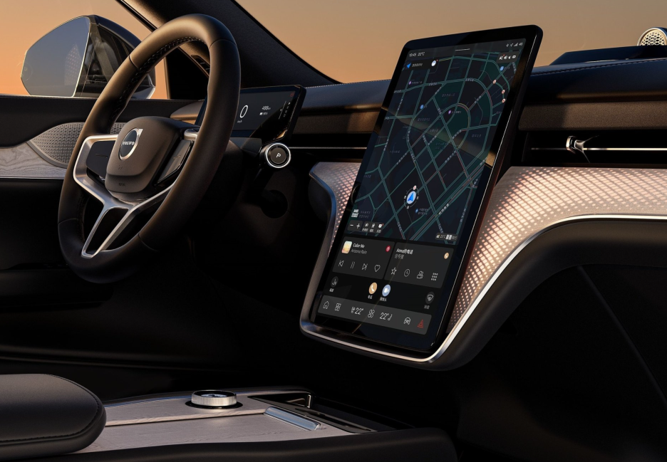 EX90의 센터 디스플레이입니다. 유출된 차량의 센터 디스플레이는 이런 디자인에 사용자 인터페이스가 적용되었습니다.