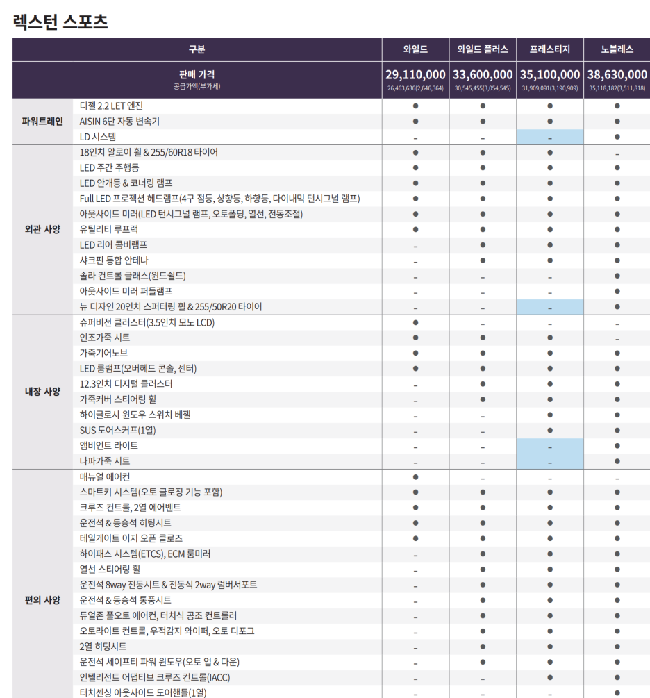 7279만원이라는 가격에 출시가 되면서, 당초에 경쟁차로 예상되었지만, 공개된 가격은 최소 1.5배 이상이라서 현실적으로 볼때 렉스턴 스포츠는 여전히 가성비라는 장점을 갖게 된 것 같습니다.