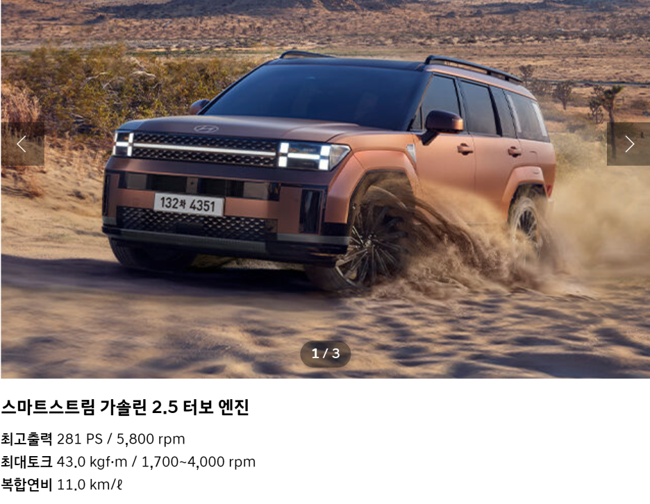 이 정도 차이로 팰리세이드에서 싼타페로 넘어가실 분들은 많지 않을 것 같은데..도심 구간에서 4륜의 경우 8km/L 까지 실연비가 낮아지기 때문에, 가솔린 2.5 터보 엔진은 추후에 시승까지 해보시고 선택하시는 것이 좋을 것 같습니다.