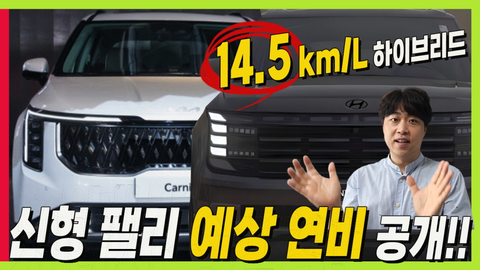 연비에서는 신형 팰리세이드가 조금 앞설 것으로 예상됩니다. 이유가 있죠? 신형 팰리세이드가 이번에 많이 커졌지만, 그렇다고 카니발 5155mm를 넘어설 가능성은 낮을 것 같습니다.