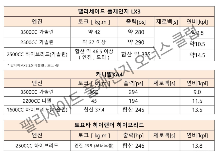 하지만 예상해 볼 수 있다는 점에서 좋은 자료를 오픈해 주신 팰리세이드 풀체인지 오너스 클럽에 감사합니다.