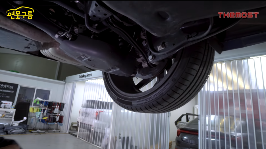 후륜 로우암 하단에 커버링이 정말 잘 되어 있네요! 커버가 보호 역할도 하지만 공력 성능에 있어서 #도풍판 역할도 하는데.. 보통 로어암만 살짝 가리는 수준이 일반적입니다.