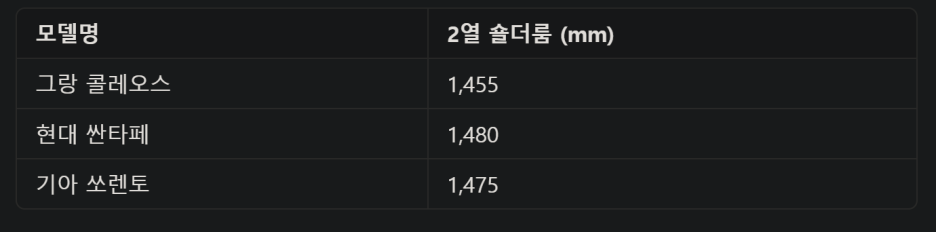 하지만 2열의 어깨 공간을 나타내는 숄더룸의 경우