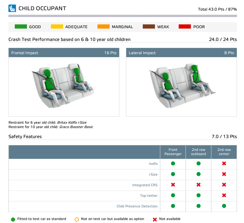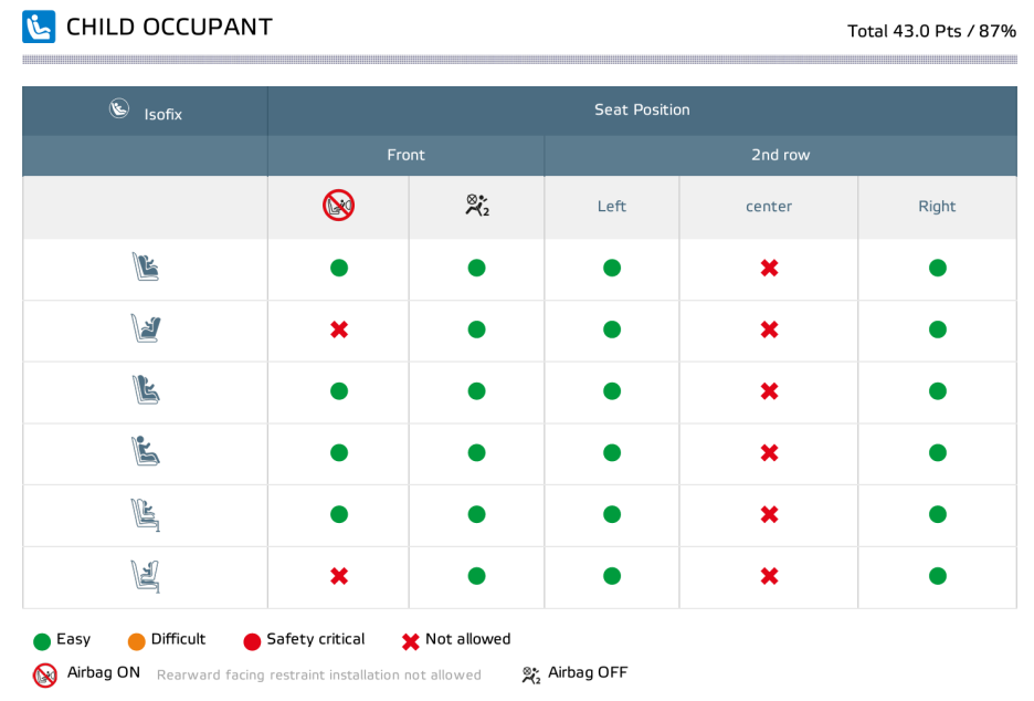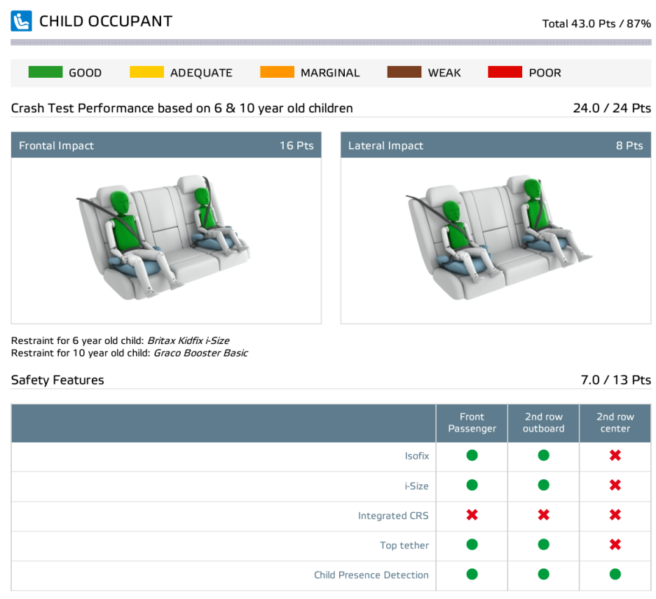 두 번째 테스트는 어린이 탑승자 보호 테스트입니다. 씰은 87%를 획득했습니다.
