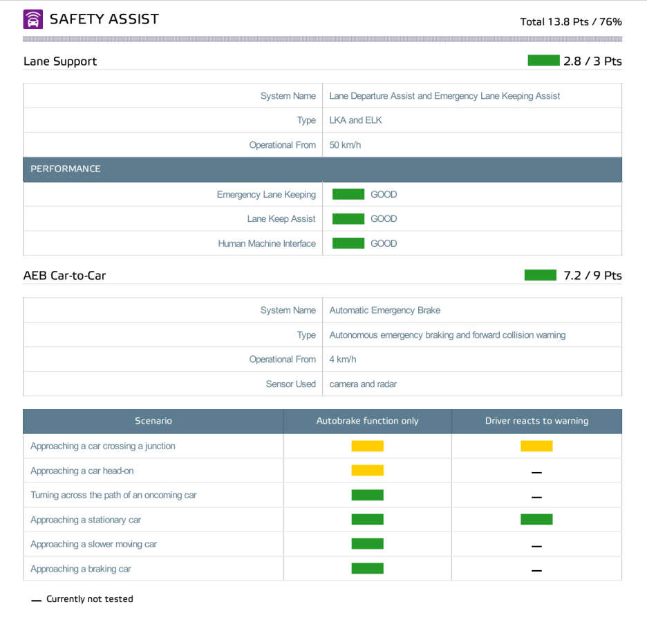 안전 보조 시스템 (Safety Assist) 에서 씰은 76%를 획득했습니다.