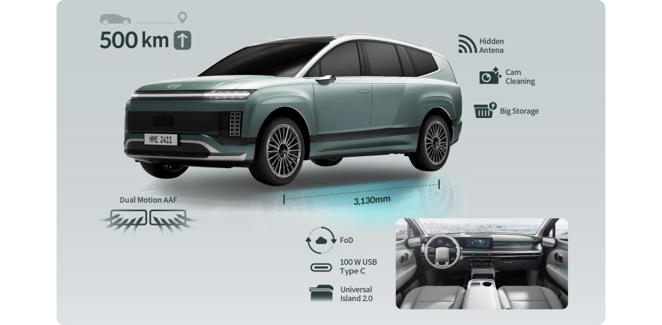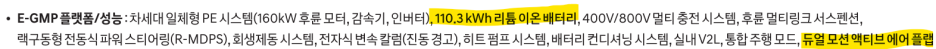 배터리는 아이오닉9이 10.5kWh 더 큰 용량이라고 알려드렸구요! 이외에 듀얼 모션 액티브 에어플랩이 장착되어 있습니다.