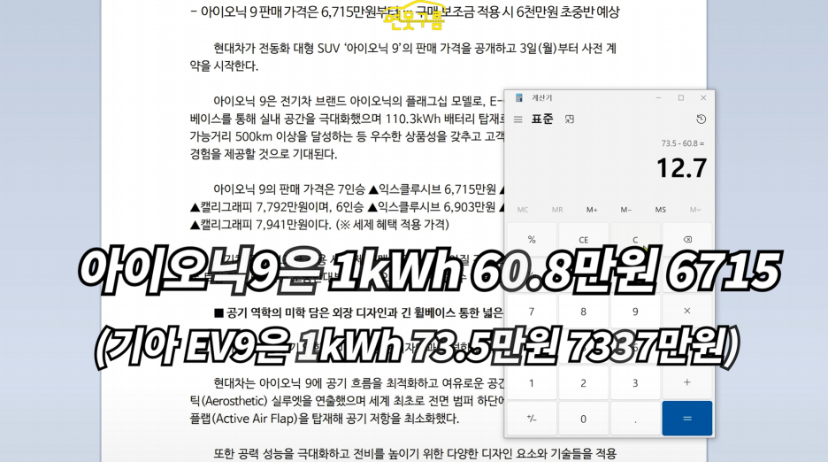 이번 영상은 기아 스포티지 페이스리프트 영상처럼 아이오닉9의 가격과 상품성이 좋다는 점을 인정해야 할 것 같습니다. EV9 차주 분들께는 죄송하지만 욕을 먹어도 소비자 입장에서 솔직히 알려드려야죠!