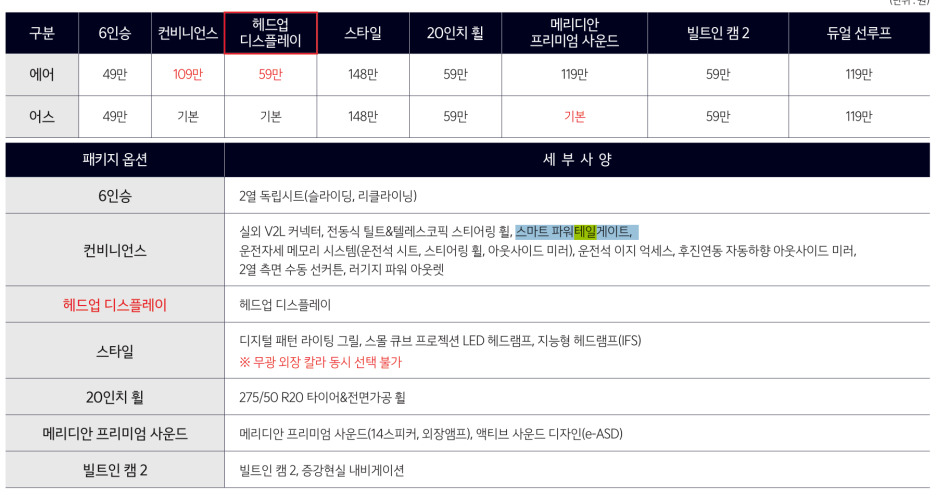 위가 아이오닉9 아래가 EV9 입니다. 이하 동일합니다. 차이가 있는 부분을 표시했는데..