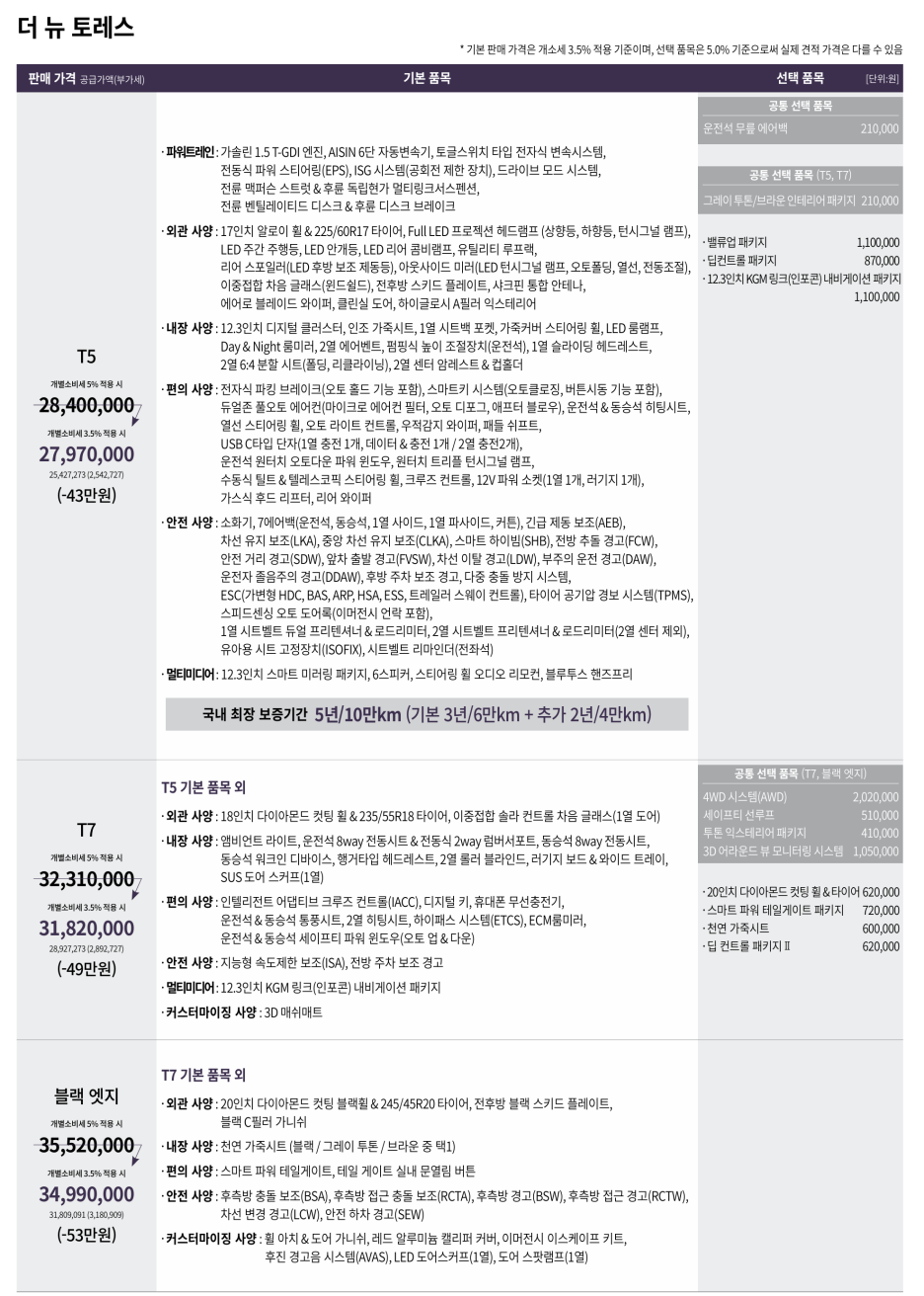 | 토레스 하이브리드 가격표 유출! 3140만원에 나온다! 스포티지 긴장! (1) | 2025.03.16 |