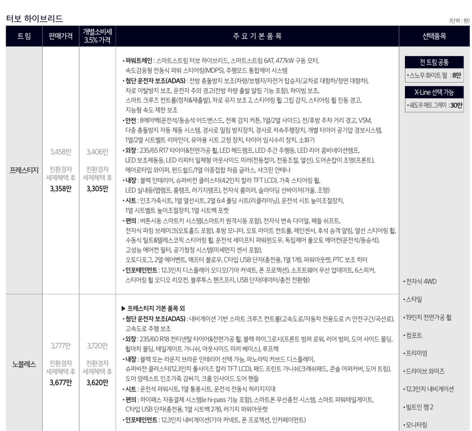 가격 공개된 토레스 하이브리드! VS 가솔린 살까?