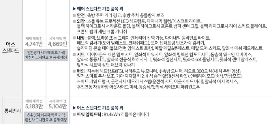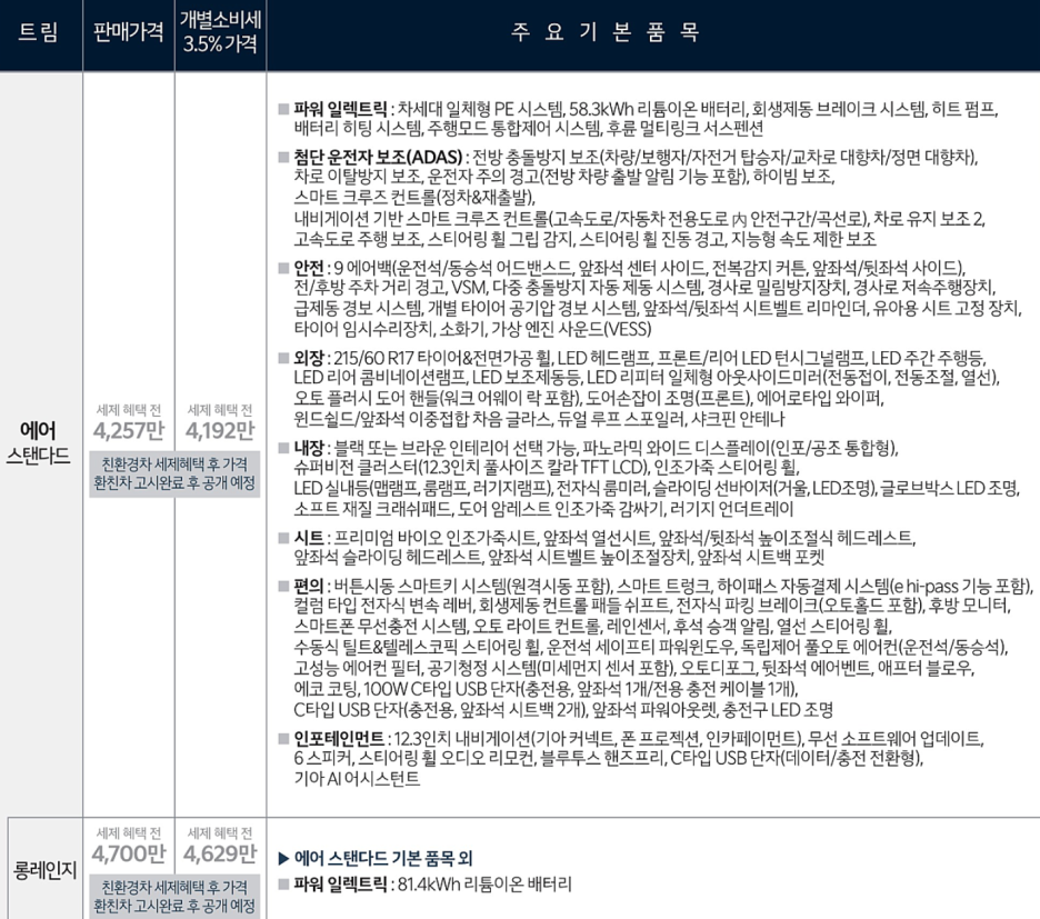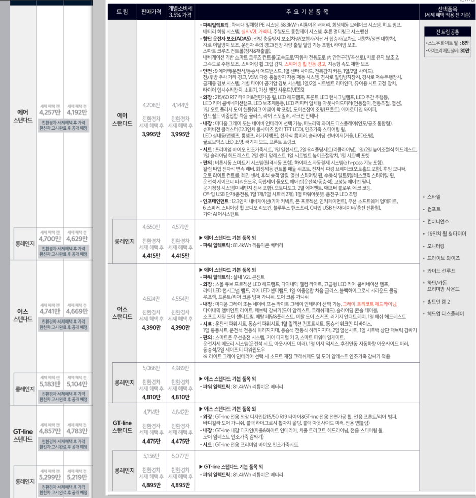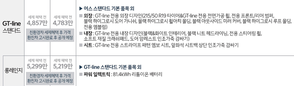 스탠다드 대비 보더 멀리 주행할 수 있는 롱레인지의 경우 약 430만원 정도 더 비싼데.. 롱레이지의 주행거리는 533km 로