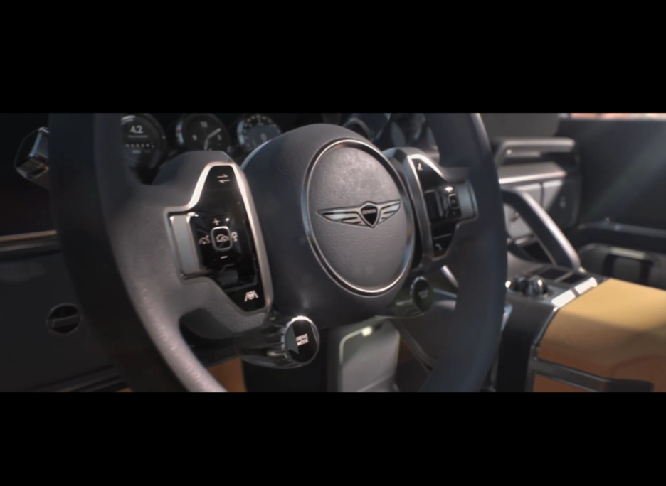제네시스 크리스털 스피어가 제공되며, 양쪽 옆에는 오프로드에서 손잡이 역할을 하는 디자인을 볼 수 있습니다.
