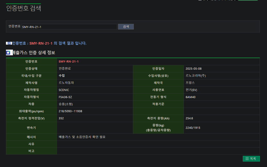 세부 인증내용을 보면 구분에 수입으로 되어 있고, 이 말은 국내에서 생산 및 조립하는 차량에 아닌 그대로 수입해서 판매를 하는 차량입니다.