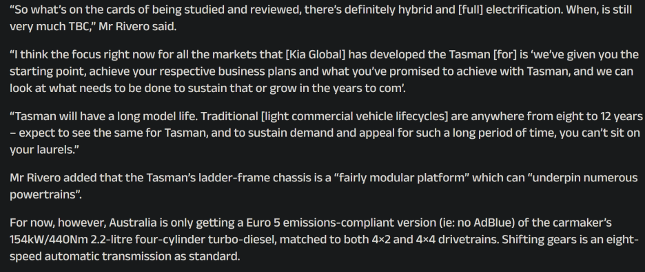 이렇게 된다면 이 엔진을 기반으로 타스만에 적용될 가능성이 높겠죠?