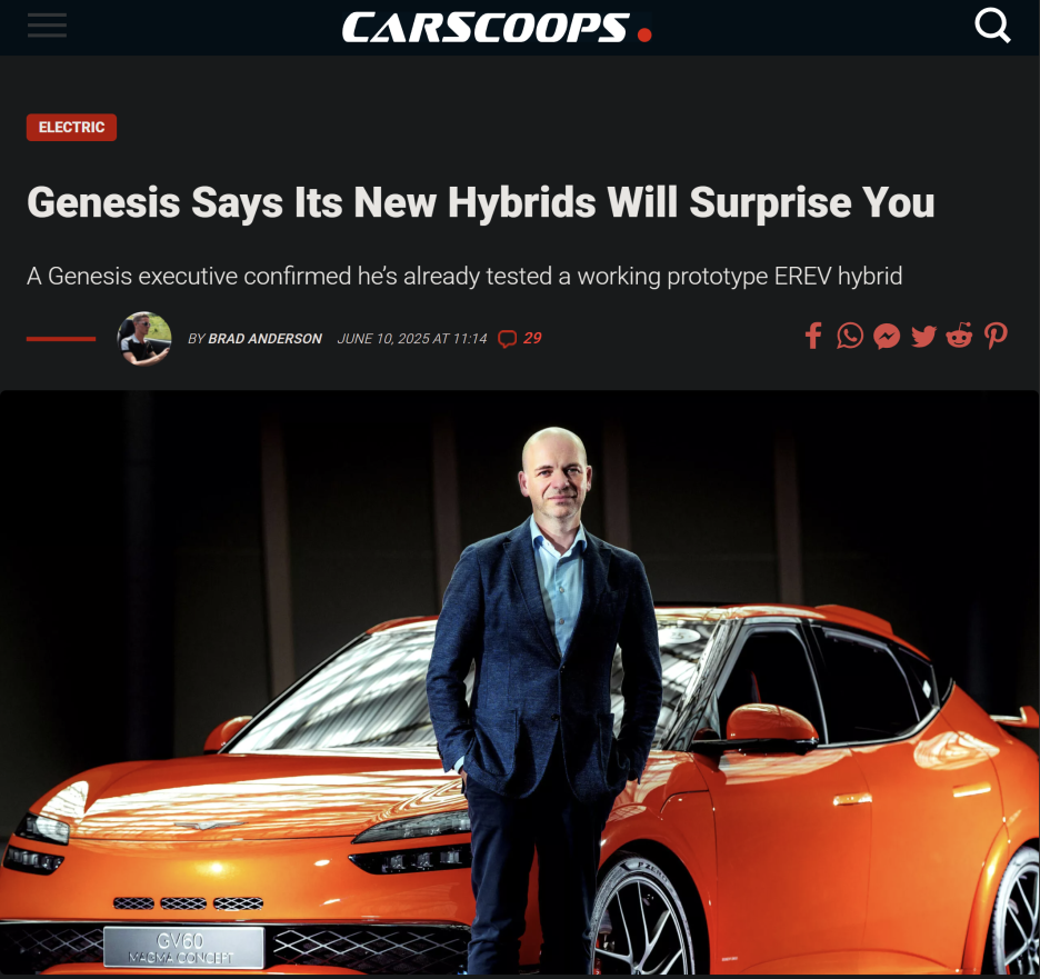 제네시스는 26년 말에 GV70 EREV 출시를 예고했는데... 지금의 상황이라면 전기차 케즘으로 인해서 좀 더 일찍 선보여야 하는 이유가 생겼죠?