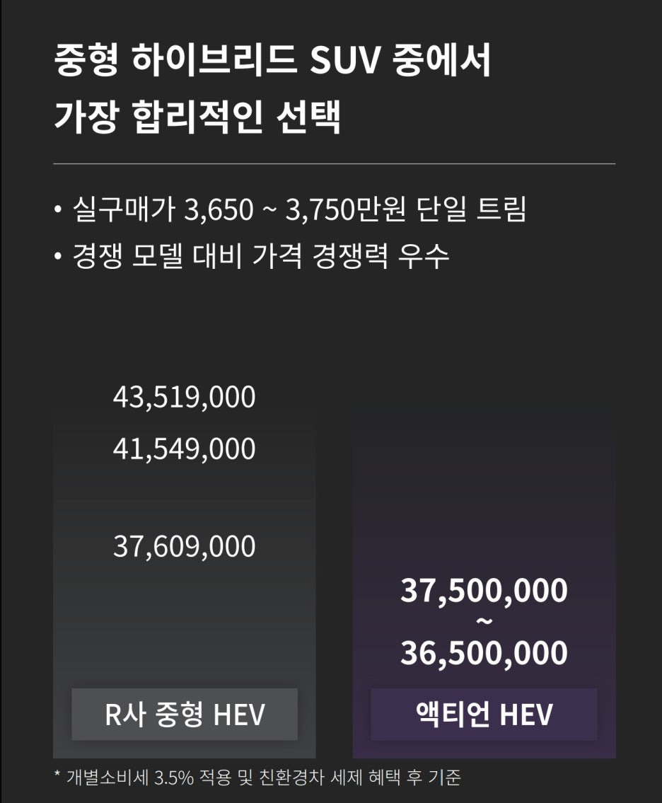 멋진 디자인에 액티언이 하이브리드로 출시되기를 원하셨던 분들이 많죠?