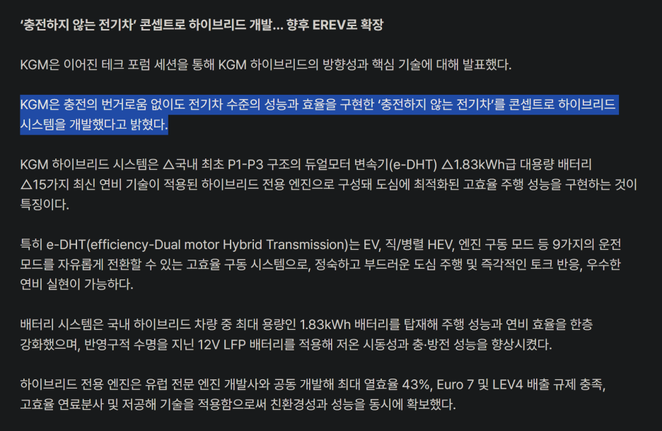그렇다면 액티언 하이브리드도 동일한 기술이 적용되어서 출시하겠다는 것으로 해석할 수 있으며, BYD와 풀하이브리드 시스템은 좀 더 길게 협력 관계로 이어갈 수 있을 것으로 전망입니다.
