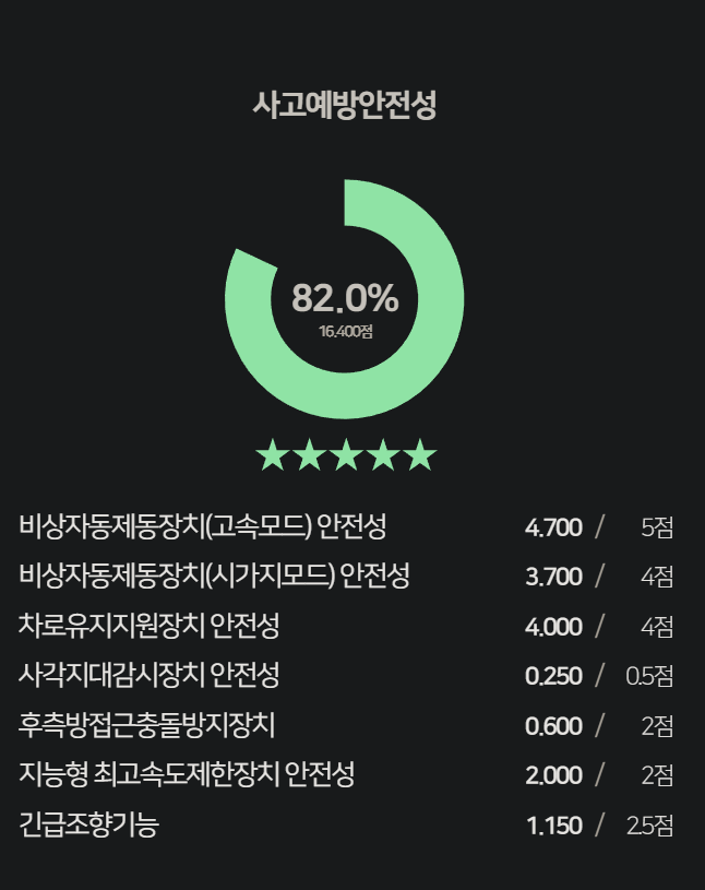 안전도 종합 등급은 첫 번째 “충돌 안전성”