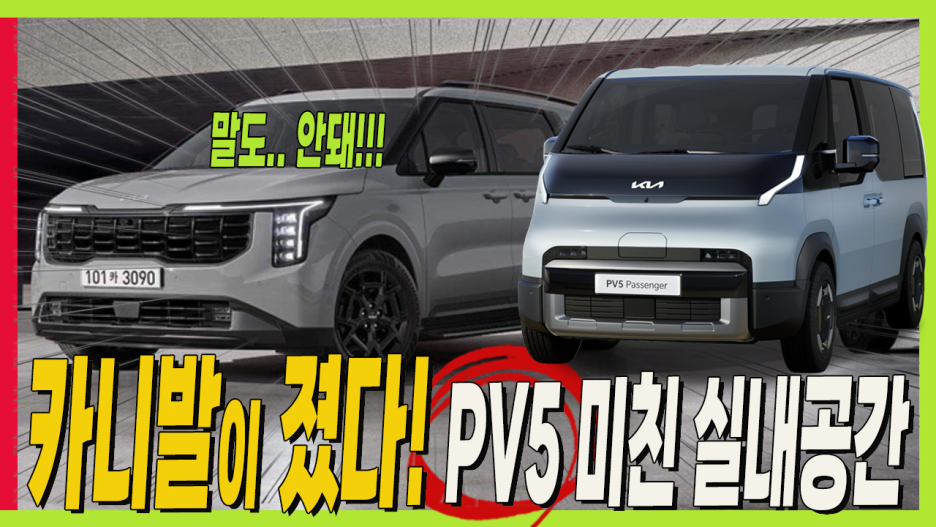 그리고 많은 분들이 궁금해 하신 미니밴 카니발과 PV5 패신저의 실내 공간을 제대로 비교해 보겠습니다. 4미터 중반의 PV5와 5미터 초반의 카니발 이게 비교가 되겠습니가?