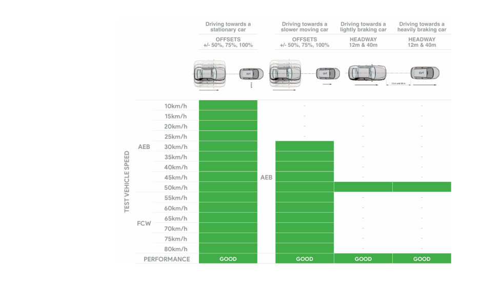 외부 통행자의 충격과 비상 자동 제동 장치가 해당 테스트를 통해서 시행이 됩니다.