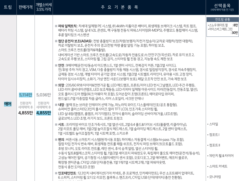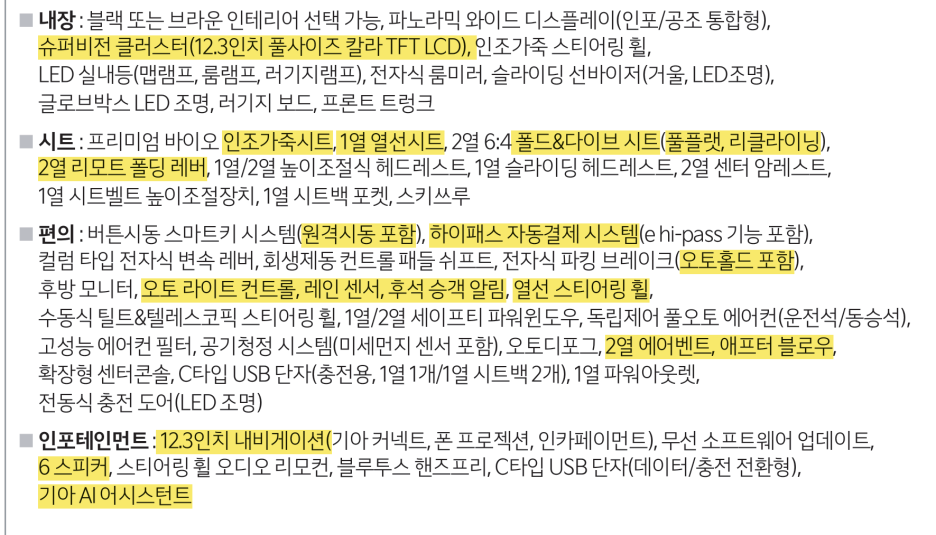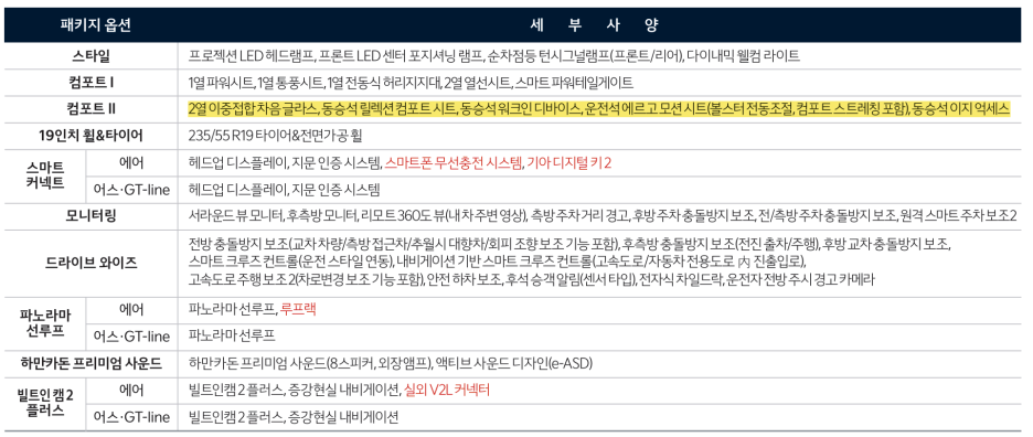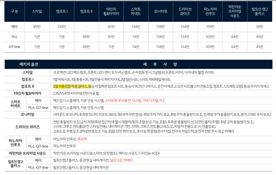 조금 아쉽게 느껴지는 건 2열에 이중 접합 차음 유리 기능은 옵션으로만 제공됩니다.