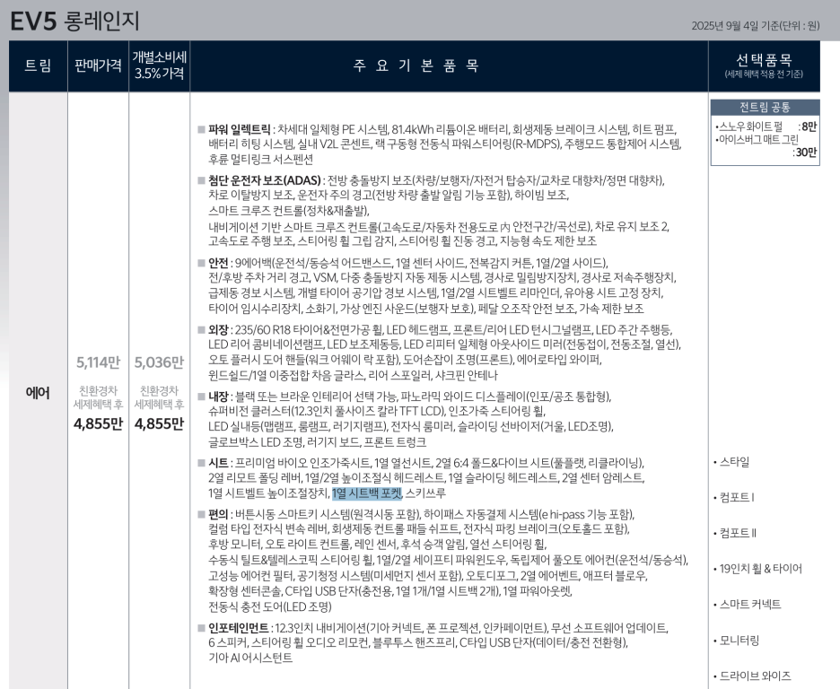 기아 EV5 가격공개! 롱레인지 4855만원, 4륜은 미출시! #사전계약