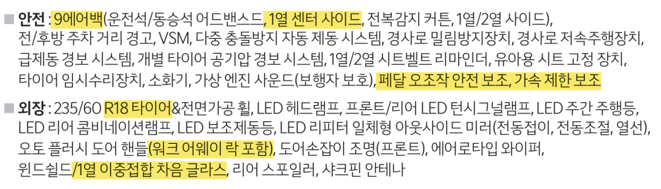 조금 아쉽게 느껴지는 건 2열에 이중 접합 차음 유리 기능은 옵션으로만 제공됩니다.