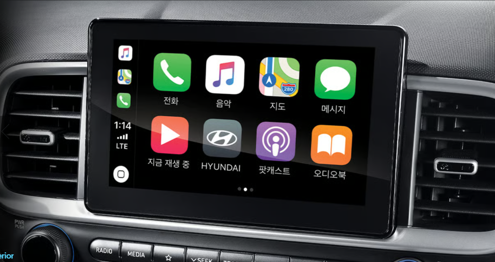 중간이 꺾인 통합형 디스플레이는 현대차와 기아에서 볼 수 있는 디자인으로...