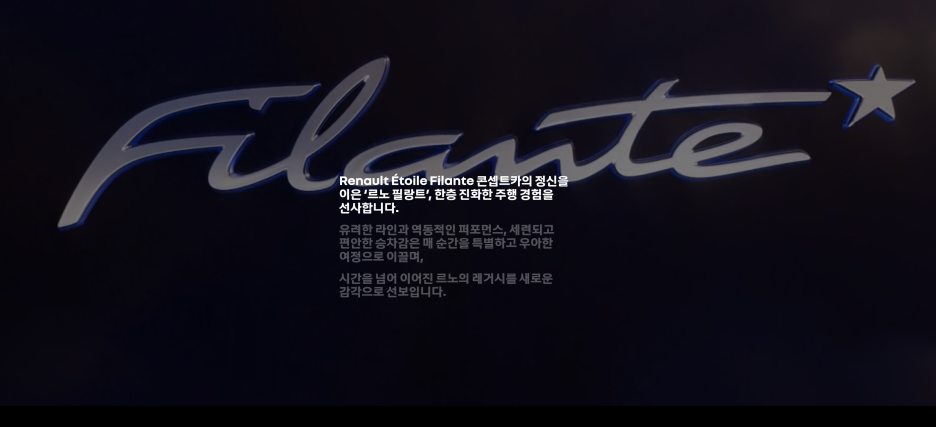 필랑트는 르노가 2025년도에 공개한 전기 콘셉트카입니다. 르노의 전동화 기술을 대표하기 위해서 만든 콘셉트라고 알려드렸죠?