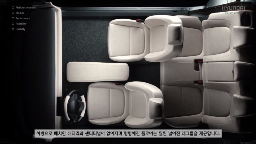 기어 콘솔 앞쪽은 막혀 있는 공간이 아닌, 사진으로 보기에는 센터패시아와 분리된 디자인으로 예상되는데, E-GMP 소개 영상에서 보이는 것처럼 이동식 콘솔 기능이 제공될지는 좀 더 지켜봐야 알 수 있을 것 같네요!